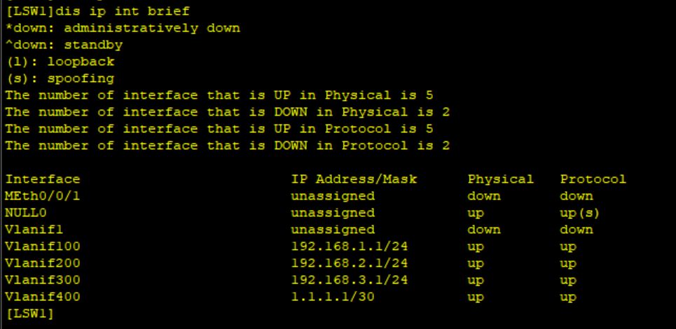 可以通过dis ip int brief 查看接口状态: